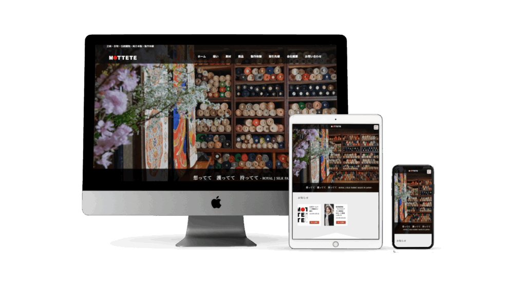 1915年創業の老舗呉服店から生まれたMOTTETEのブランド紹介を全面に押し出しております。